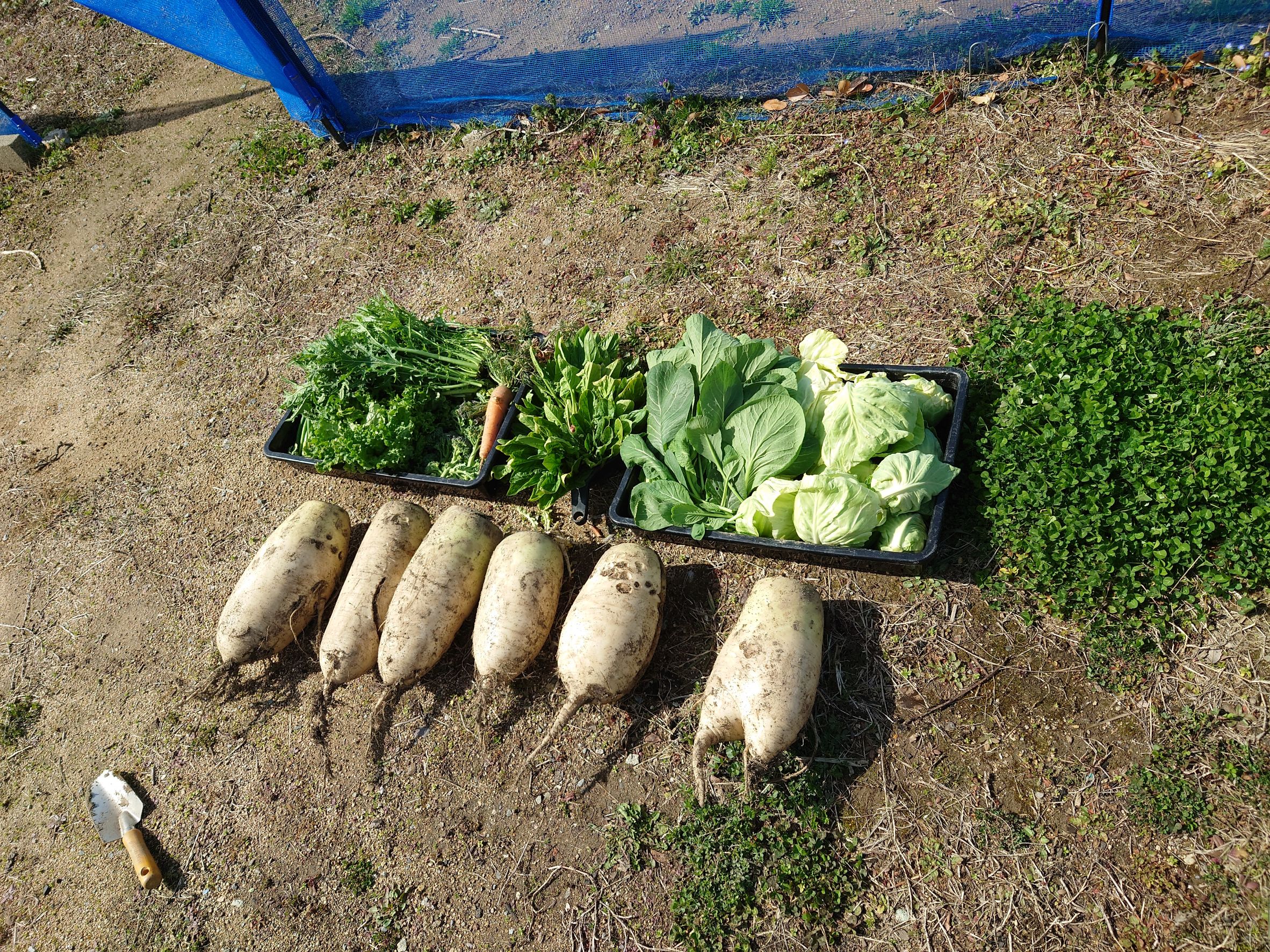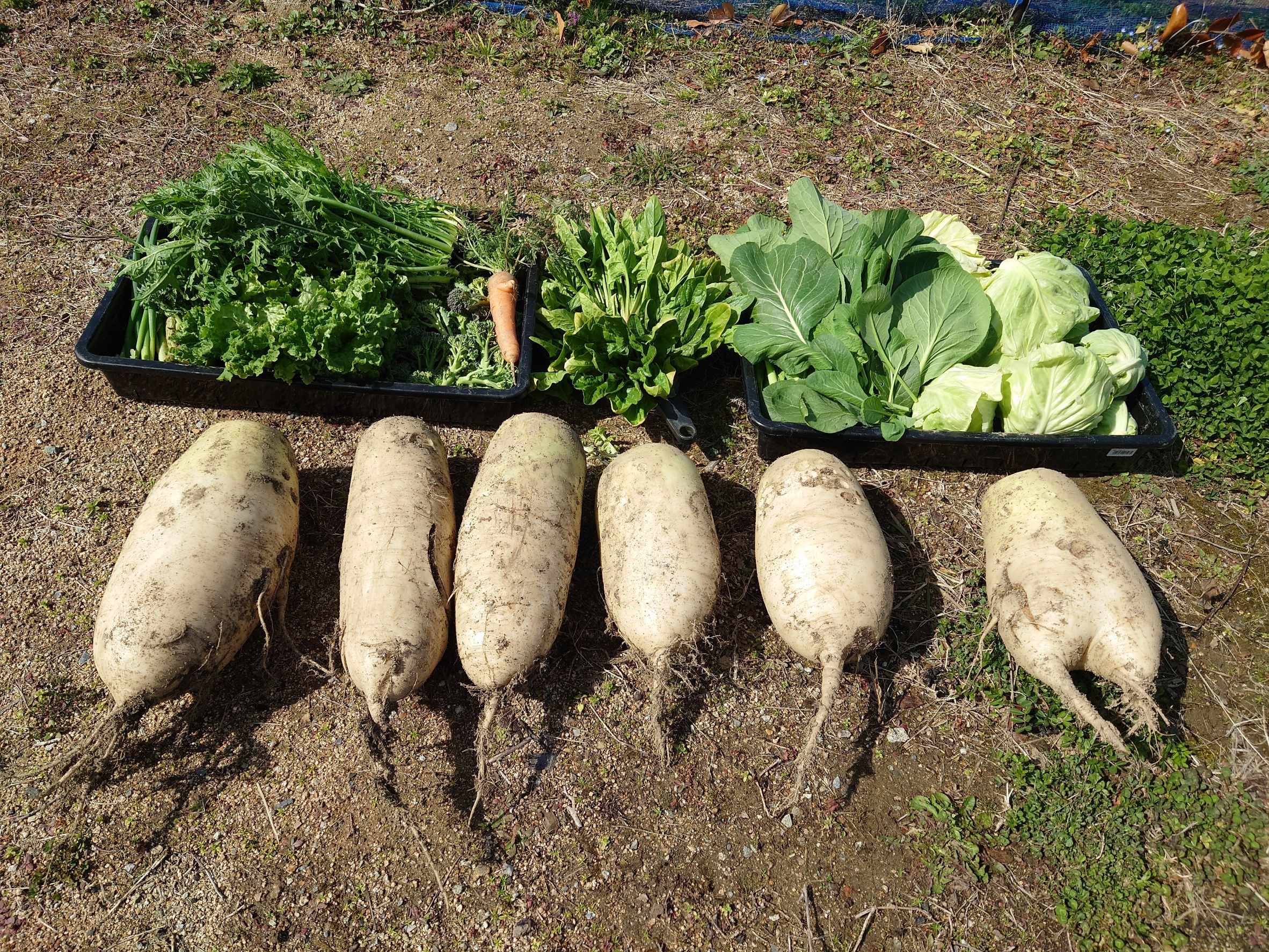 ダイコンは土中保存の掘り起こし。