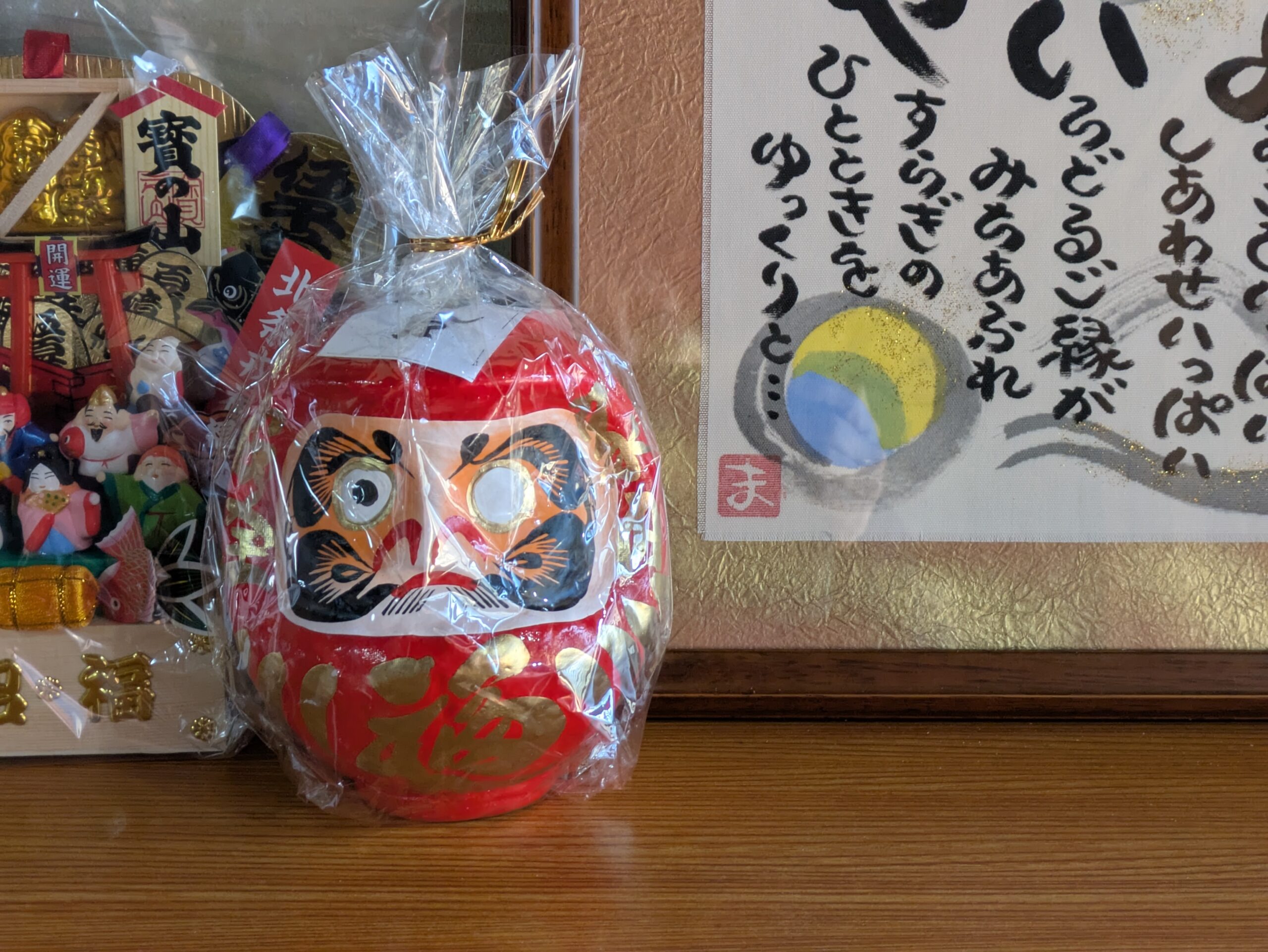 私達もだるまさんを授けていただきました。もう一つの目を入れられるのはいつになるかしら・・・。